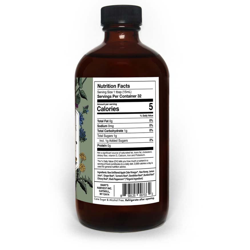 Double Size 16 oz Bottle: Swap out the heat of fire cider roots with organic superfood roots…smooth tasting and mildly bitter, this powerhouse tonic boasts immune-boosting, joint health, liver function, cognitive and joint health qualities.